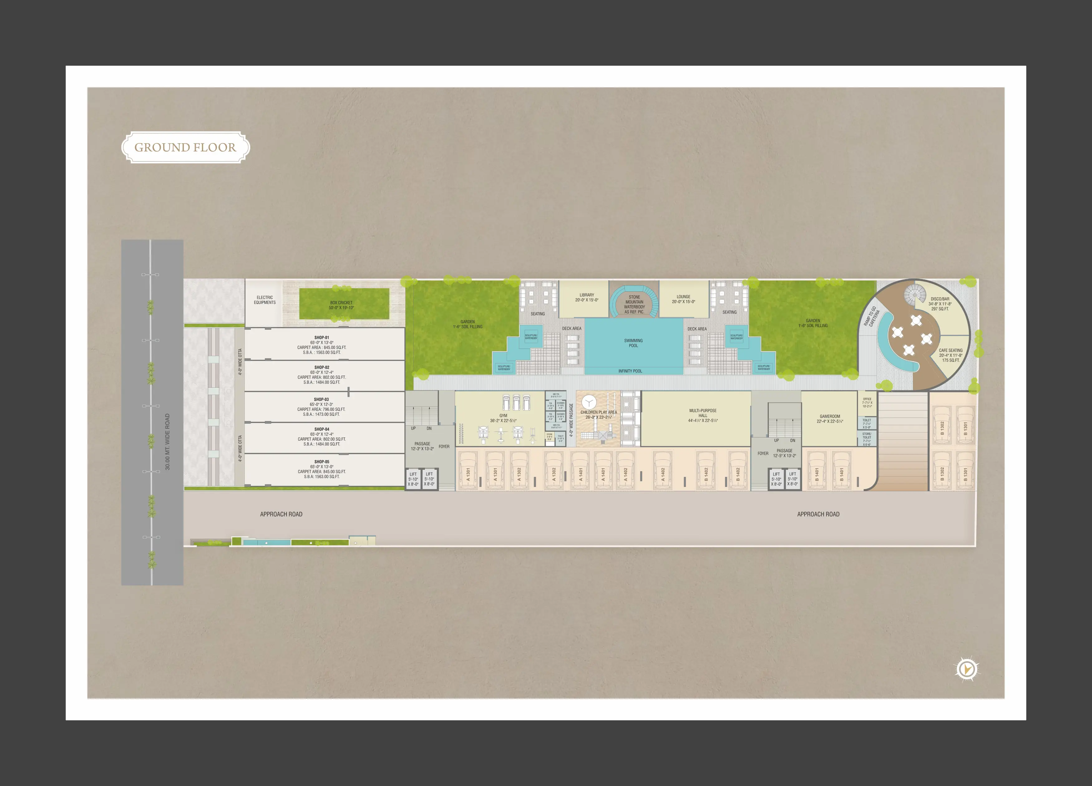 • Each Flat 2 Alloted Car parking.