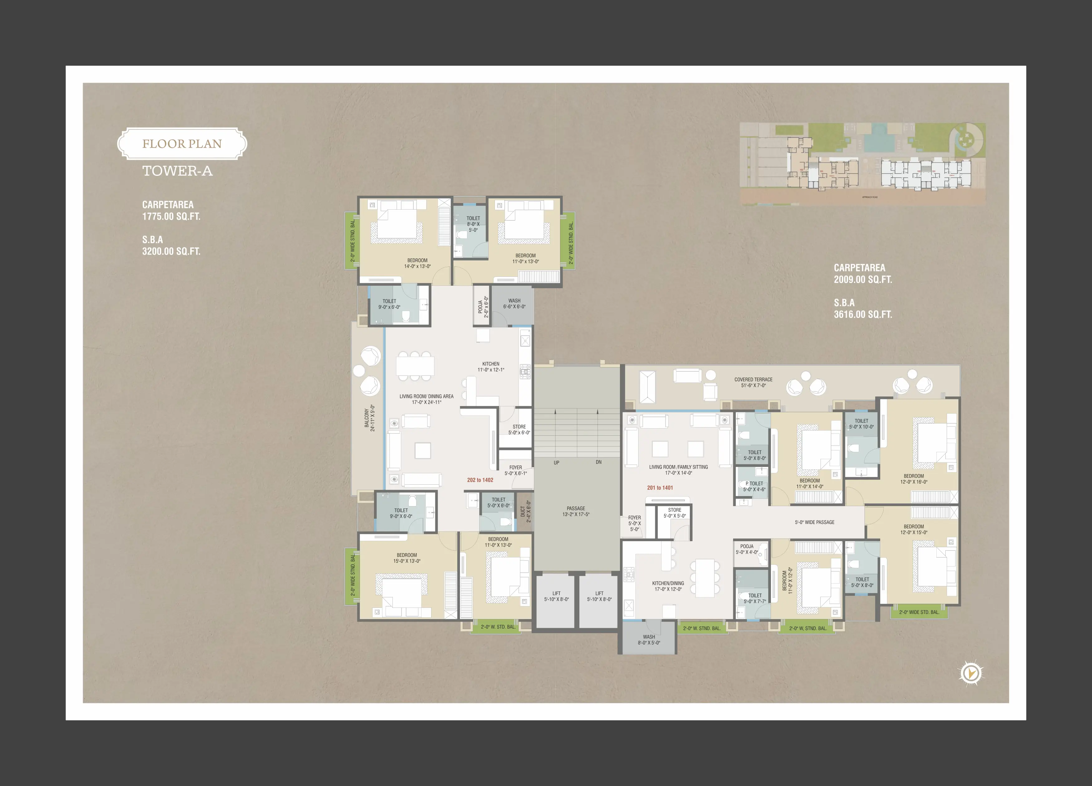 • 2 High speed elevators in each tower (Schindler/Kone or equivalent).