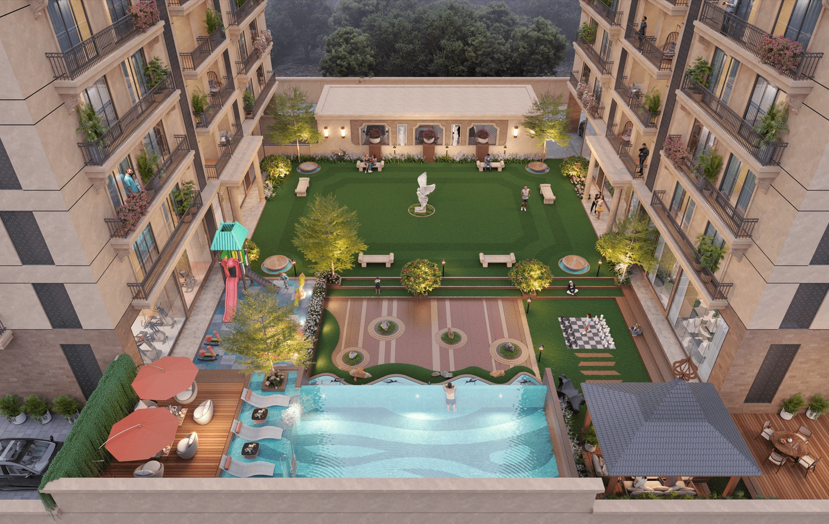 Step into Courtyard Bellavista -an iconic blend of royal architecture and contemporary comfort. Designed for those who value timeless elegance, this exclusive ex collection of 4 BHK residences and shops creates a lifestyle steeped in class, serenity, and sophistication.