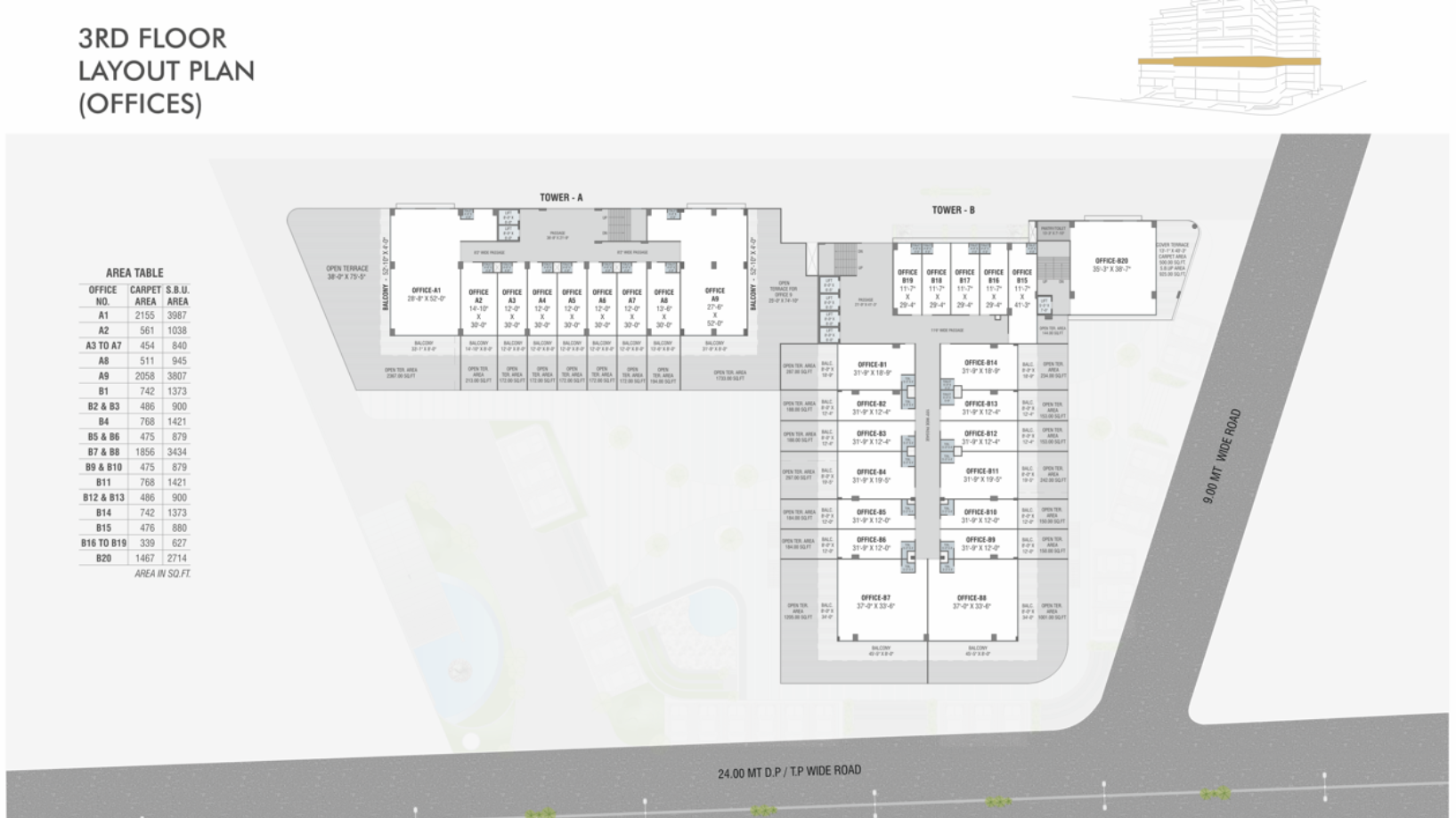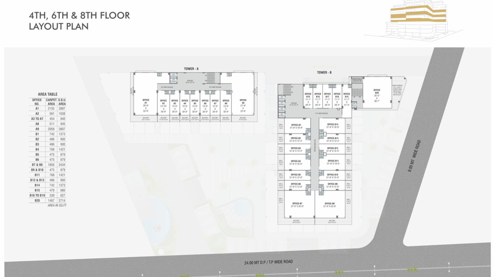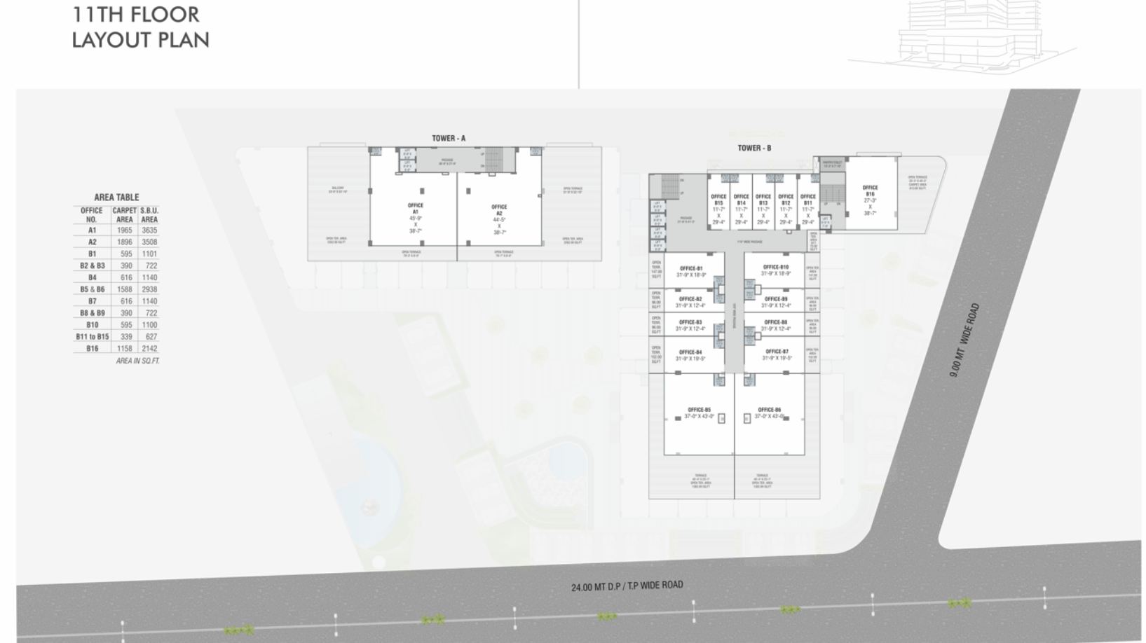 • For Office space - Individual toilet provision will be given.