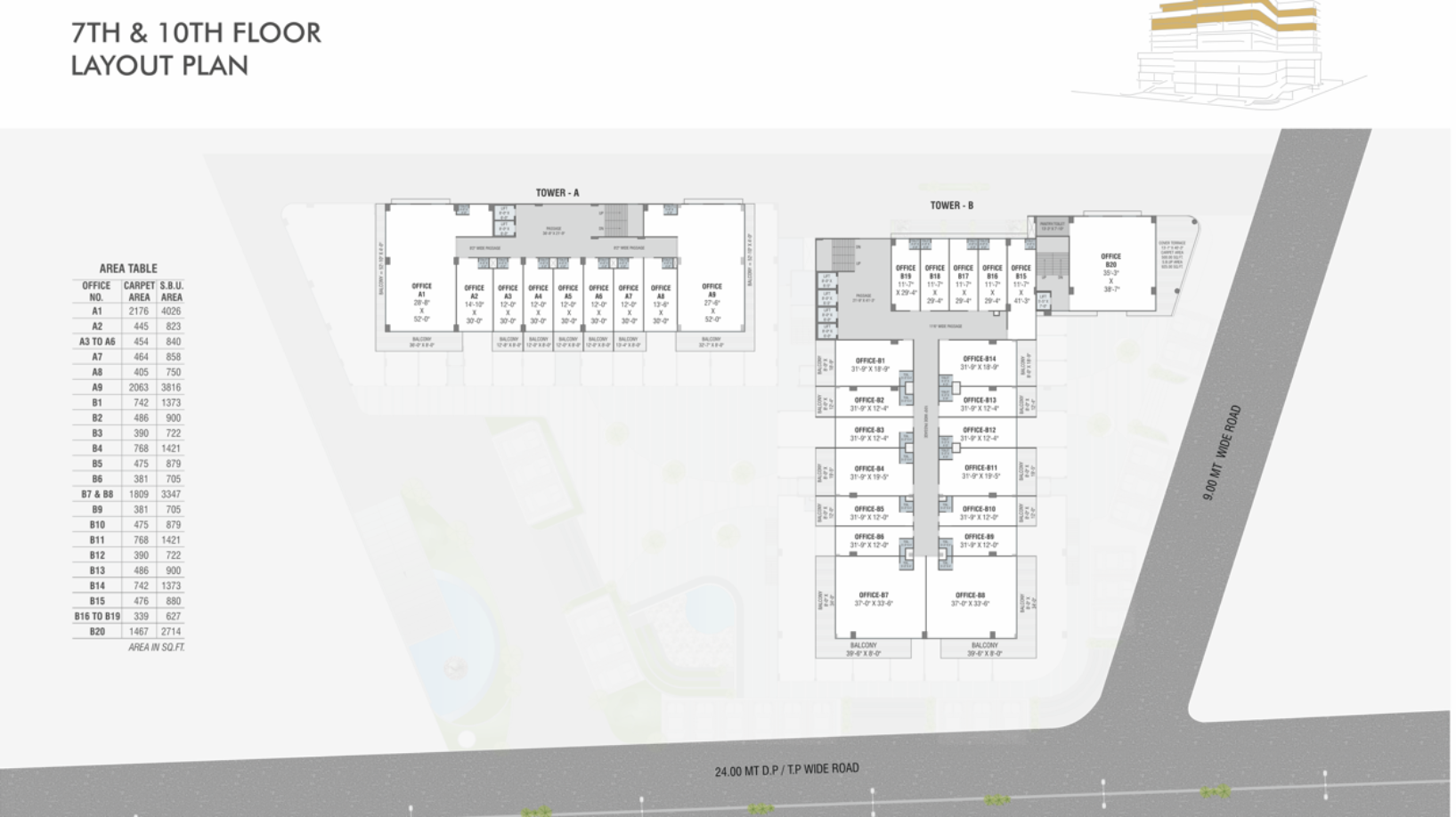 • RETAIL ON GF, FF, SF+ 9 LEVELS OF OFFICE SPACES