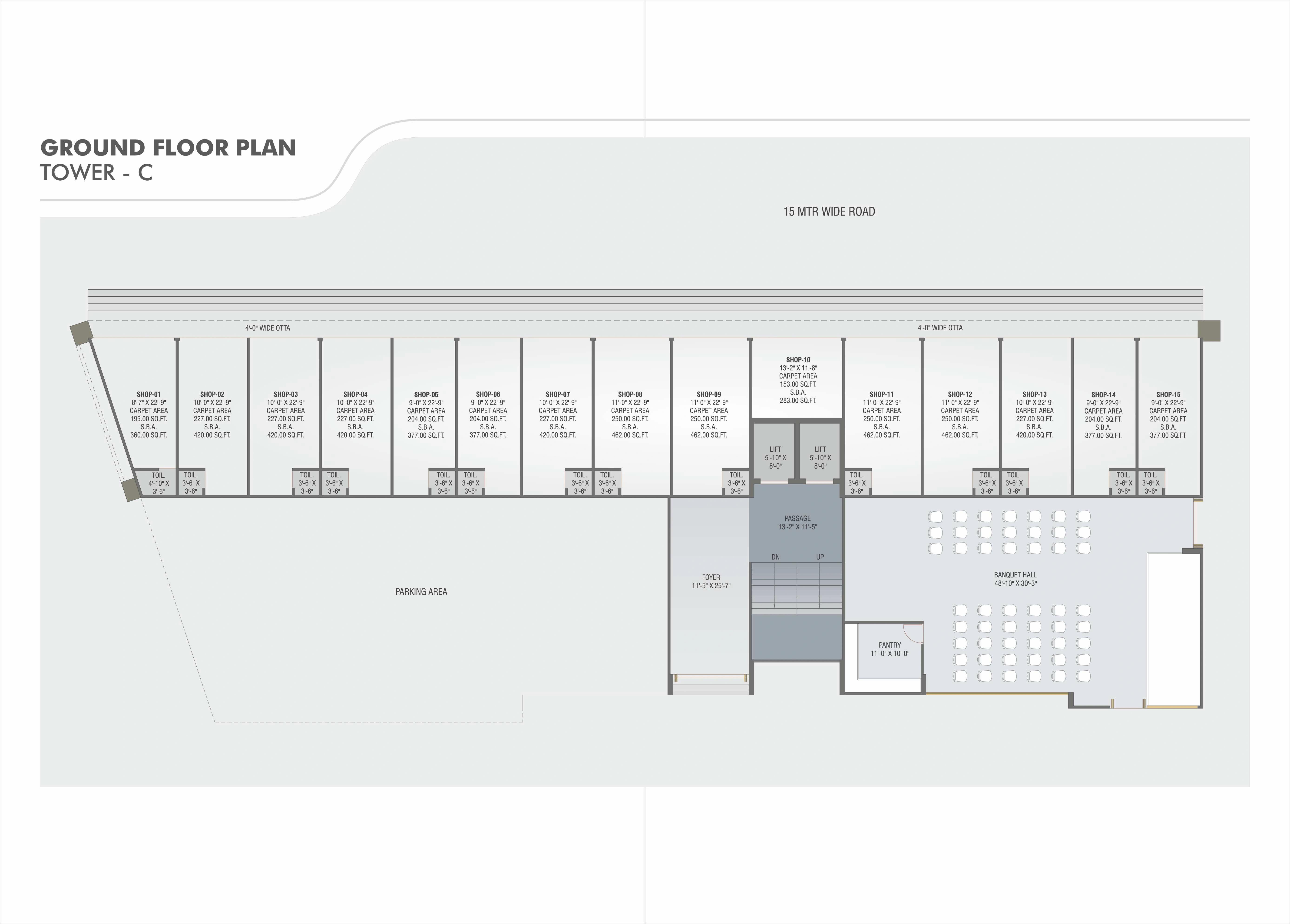 • Interior: Smooth finish plaster with 2 coat Putty and Primer.