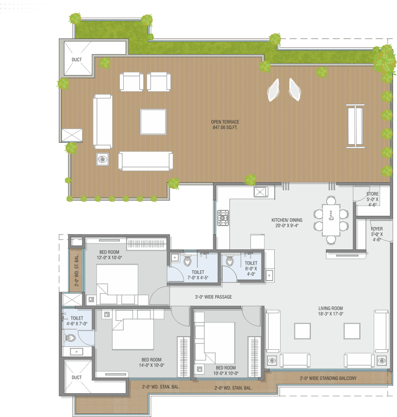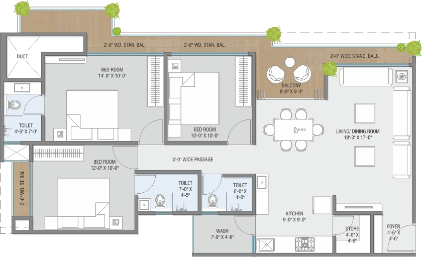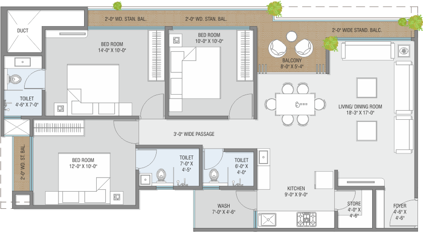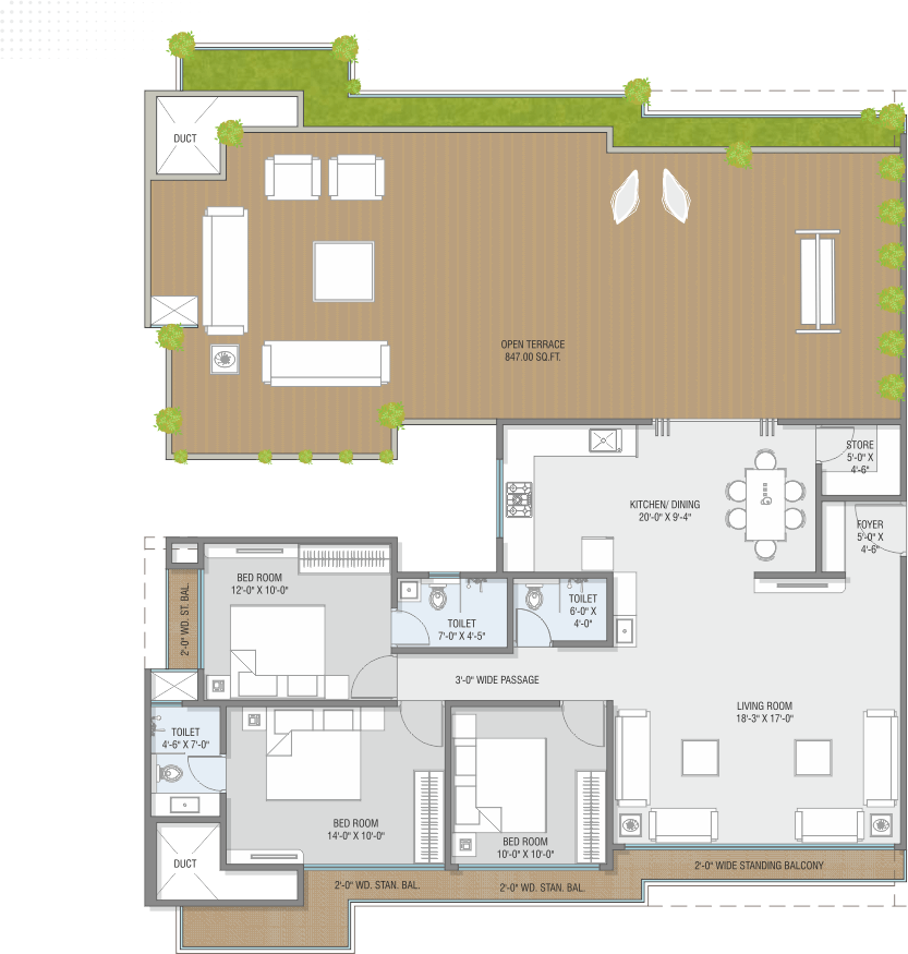 • AC point in Living Room/Dining and in all Bedrooms.