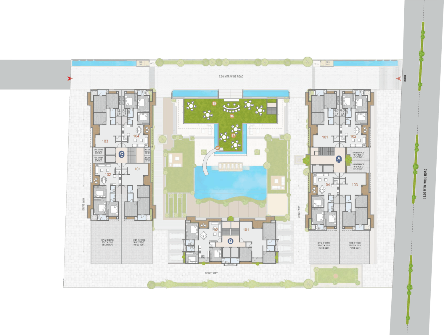 • Elegant Entry Foyer in each residential tower with smart security lock.