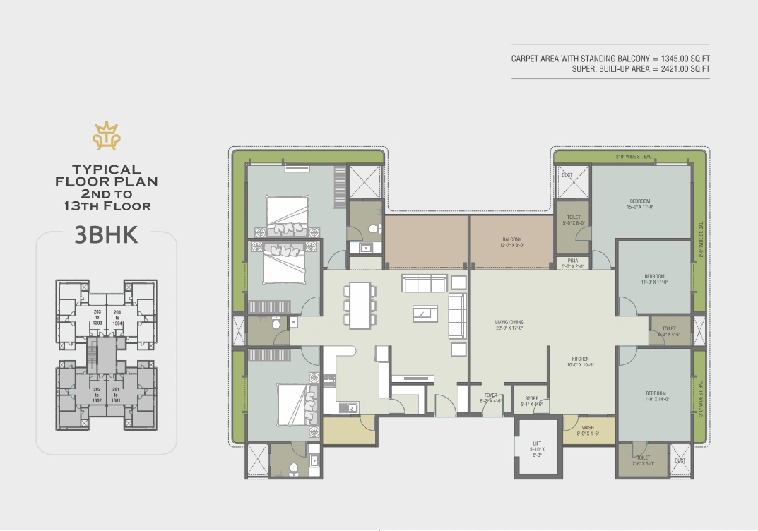 • AC point in Living Room/Dining and in all Bedrooms.