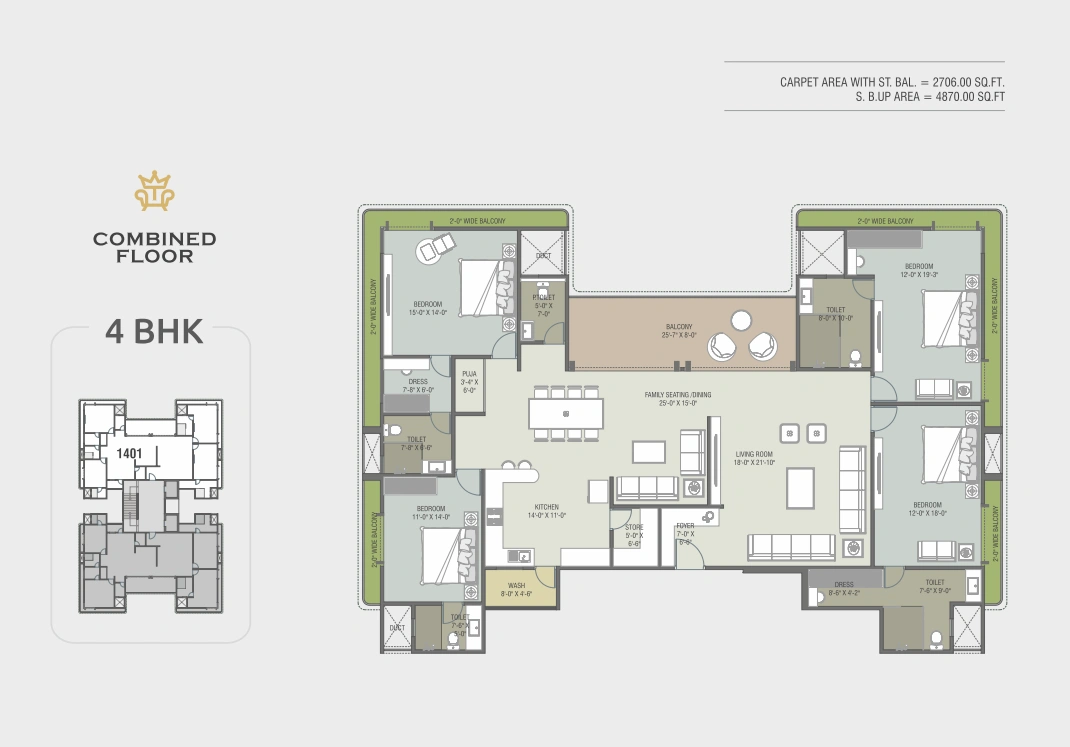 • 600mm X 1200mm premium quality glazed vitrified tiles in Living Room, Family Sitting, Kitchen, Dining and Passage with skirting.