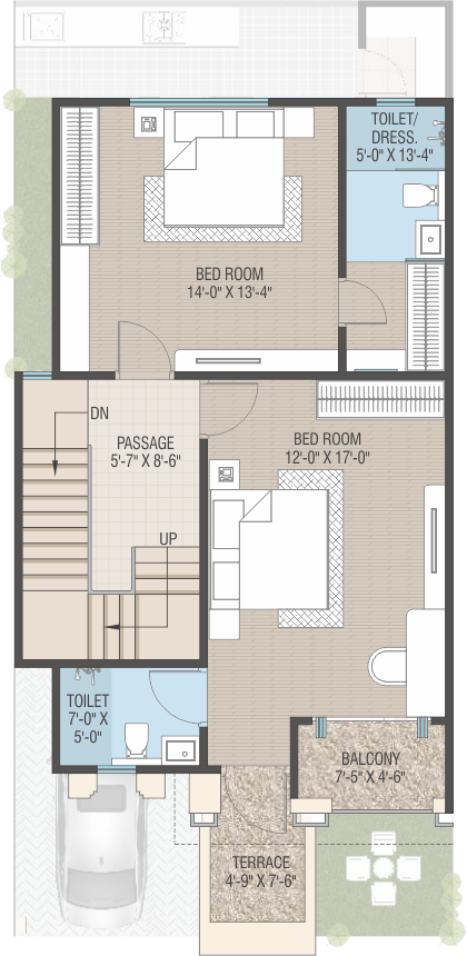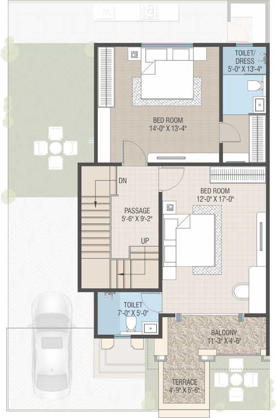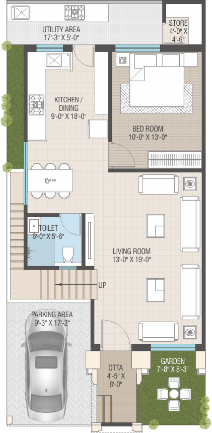 • Interior: Smooth finish plaster with 2 coat Putty and Primer.