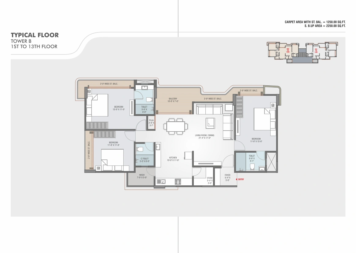 • Anti-skid flooring in Bath, Wash and Balcony.