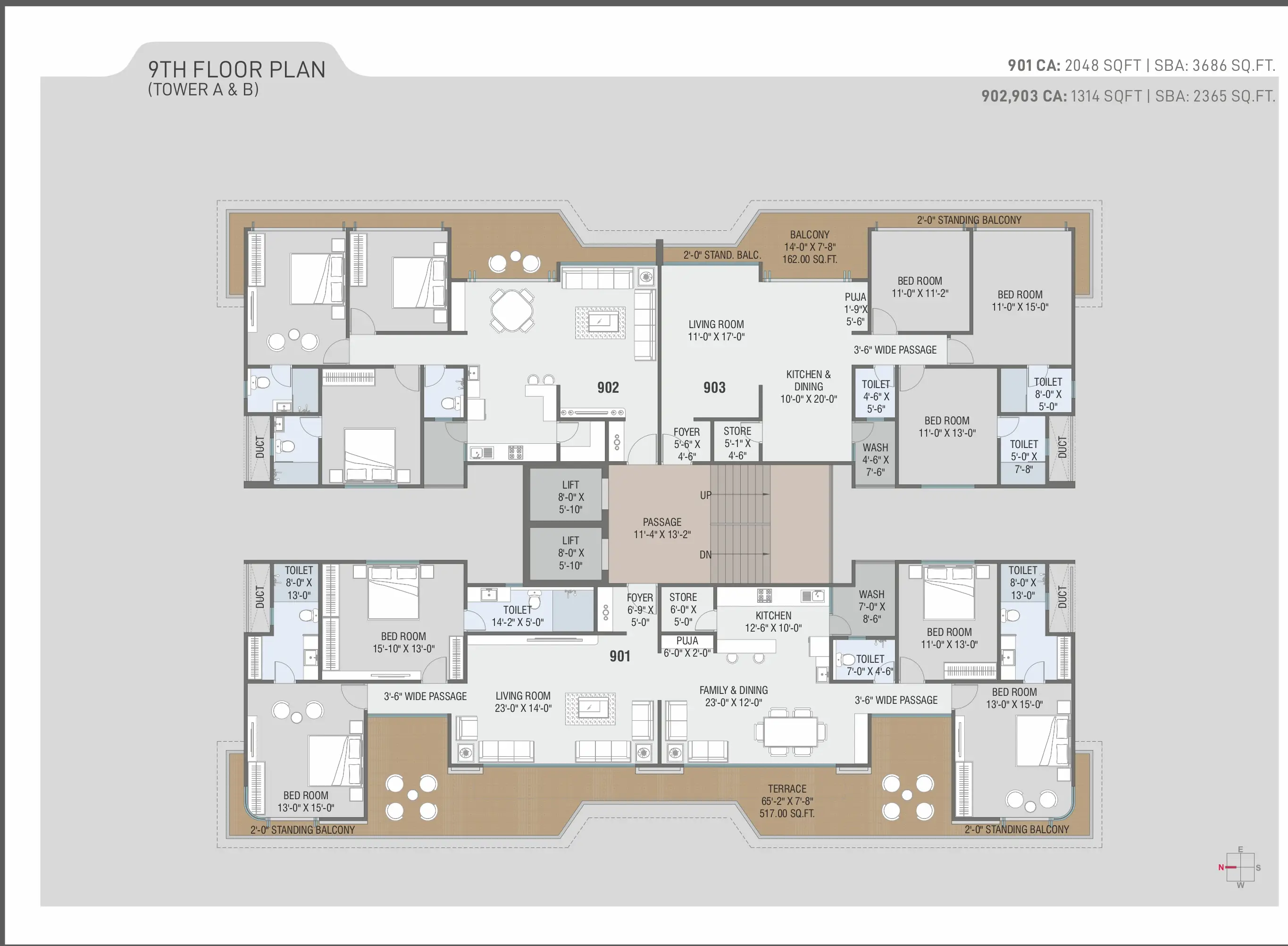 • 2 High speed elevators in each tower (Schindler/Kone or equivalent).